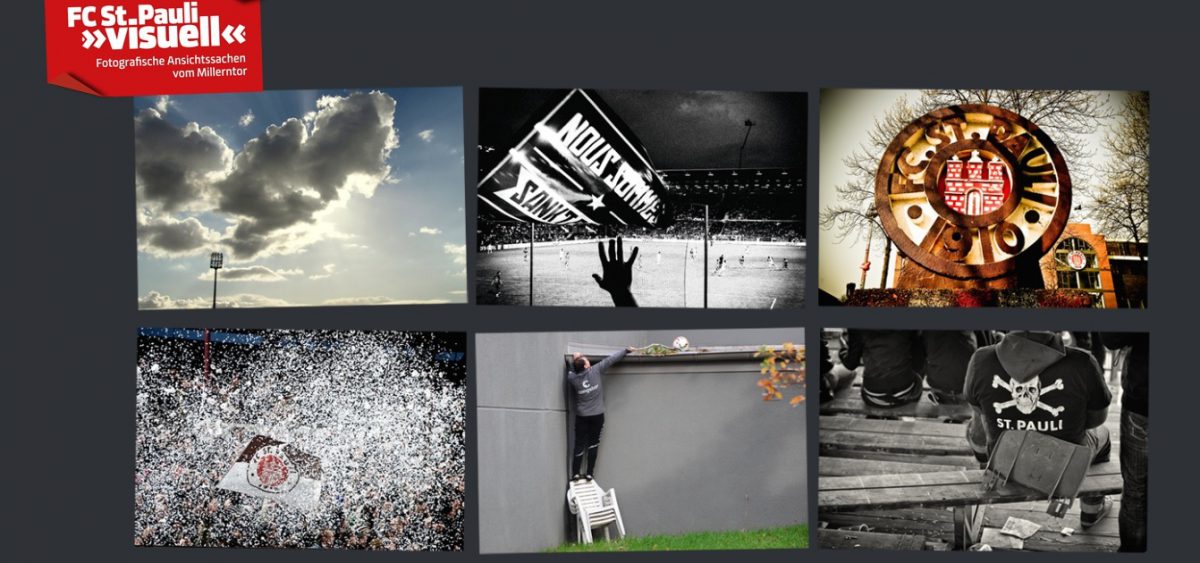 Beteiligt sind Antje Frohmüller, Ariane Gramelspacher, Sabine Scheller, Swen Schulz, Peter Boehmer und Selim Sudheimer. Die beiden letzteren sind Mitglied im Verein Hamburger Sportjournalisten (VHS). „FC St. Pauli visuell – Fotografische Ansichtssachen vom Millerntor“ heißt die Ausstellung, die noch bis zum 25. April zu sehen ist.
