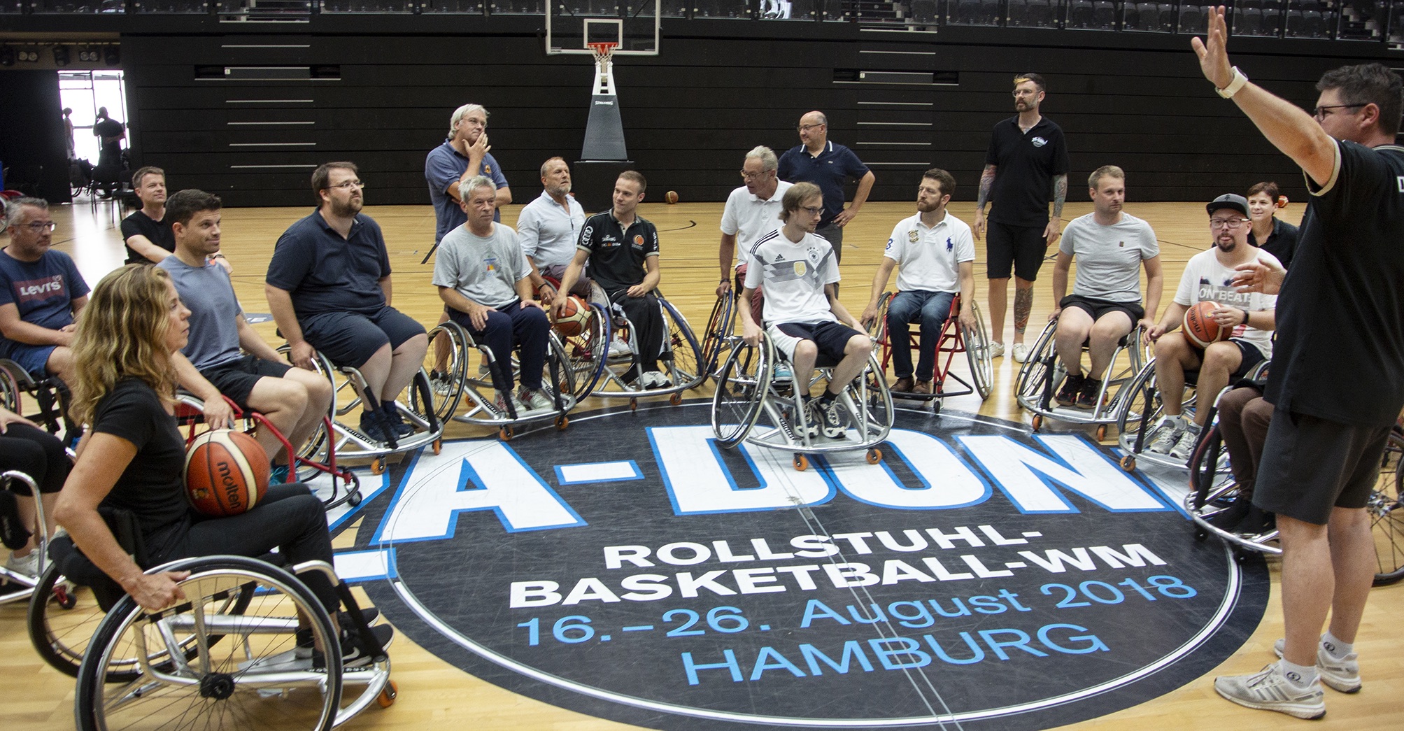 Neben dem rein sportlichen Teil und einer kleinen Einführung in das Rollstuhlbasketball-Regelwerk und die -Grundlagen, wurden auch jede Menge Informationen über die WM in Hamburg an die Hand gegeben. Vom 16. bis 26. August 2018 sind 28 Teams am Start, die Organisatoren rechnen mit gut 50.000 Zuschauern.